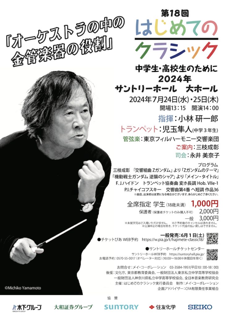 毎年夏に開催しており、今年で18回目。指揮者は小林研一郎さん。副題に「中学生・高校生のために」とあり、三枝成彰さん作曲の「交響組曲Zガンダム」より「Zガンダムのテーマ」、「機動戦士ガンダム 逆襲のシャア」より「メイン・タイトル」など、子どもが親しみやすいプログラムでした。
