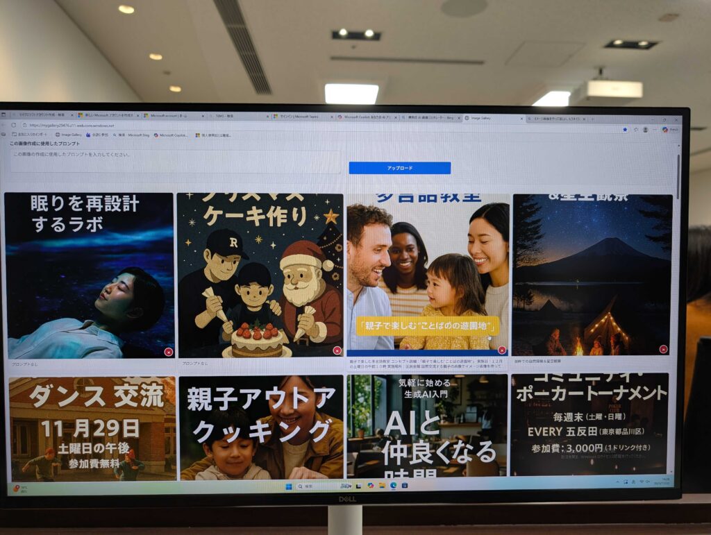 後半はマイクロソフトの生成AIアプリ「Copilot」を使い、イベント企画をたて、企画書をパワーポイントにまとめました。