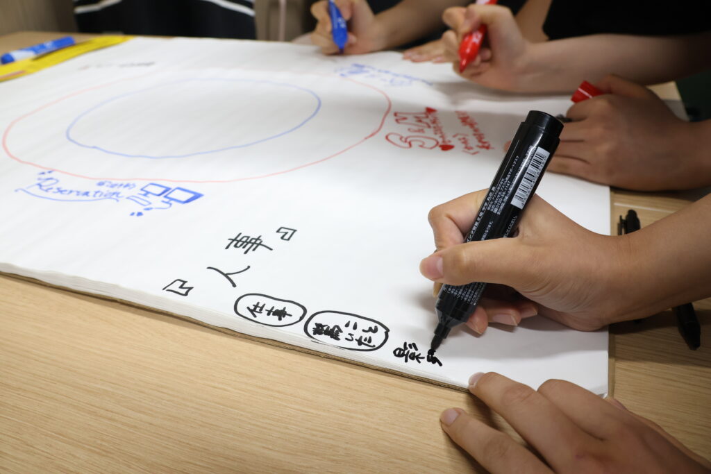 宿泊予約の部署を担当した参加者は「壁一面に予約を書いた紙が貼ってあって、無味乾燥な印象を覚えたが、入ってみたらスタッフが優しかった。メールの返信、宿泊対応、クレーム対応で目が回るほど忙しいのに、スタッフ同士の仲が良いのはどうしてですか?」とたずねました。人事マネージャーは「良い気づきですね。ハプニングが多いから団結力があるのかな」と答えました。